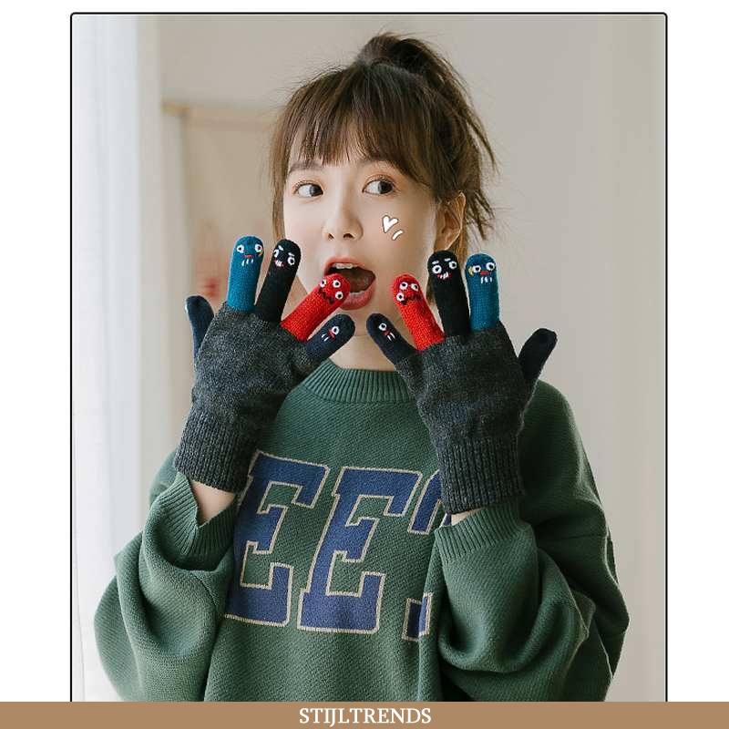 Handschoenen dames : warme winter herfst student persoonlijk meisje mooi cartoon zoet handschoen vijf vingers hart zwart, kleur : grijs, zwarte.