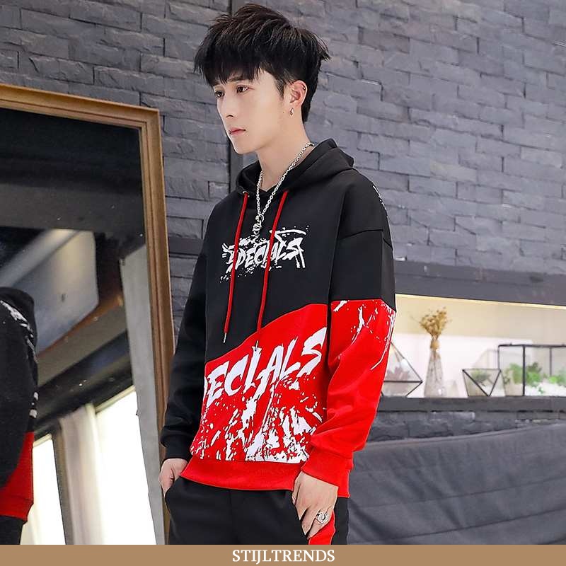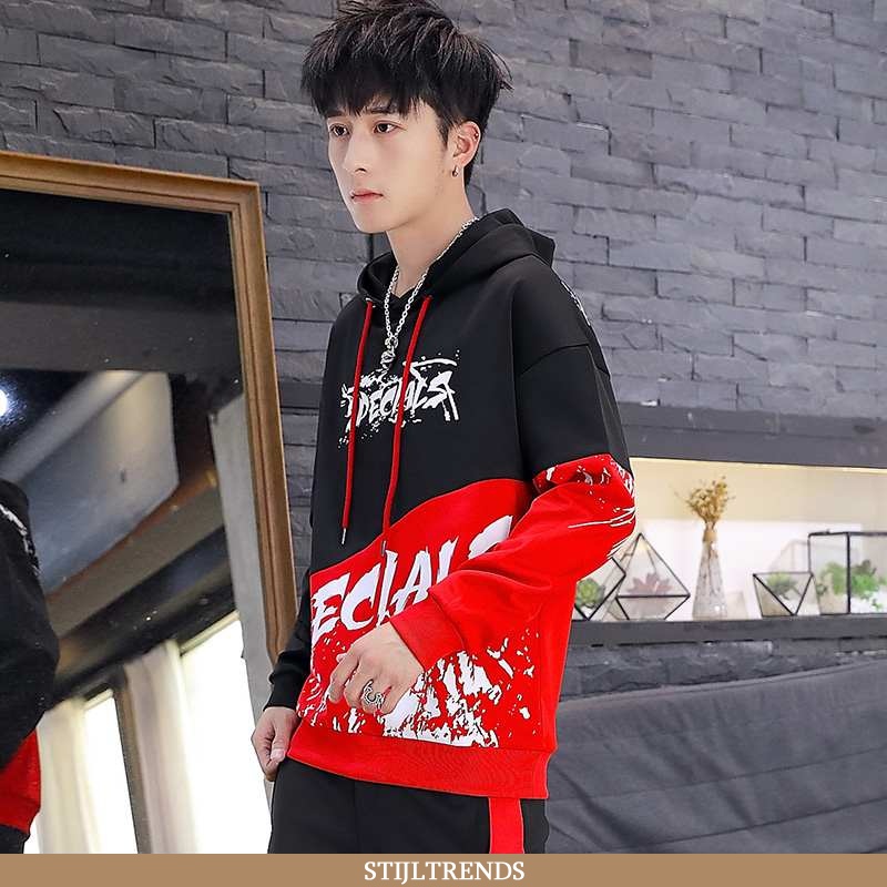 Hoodie heren : t-shirt lange mouw baggy lente trendy herfst jasje wit mannen, kleur : witte, rood.