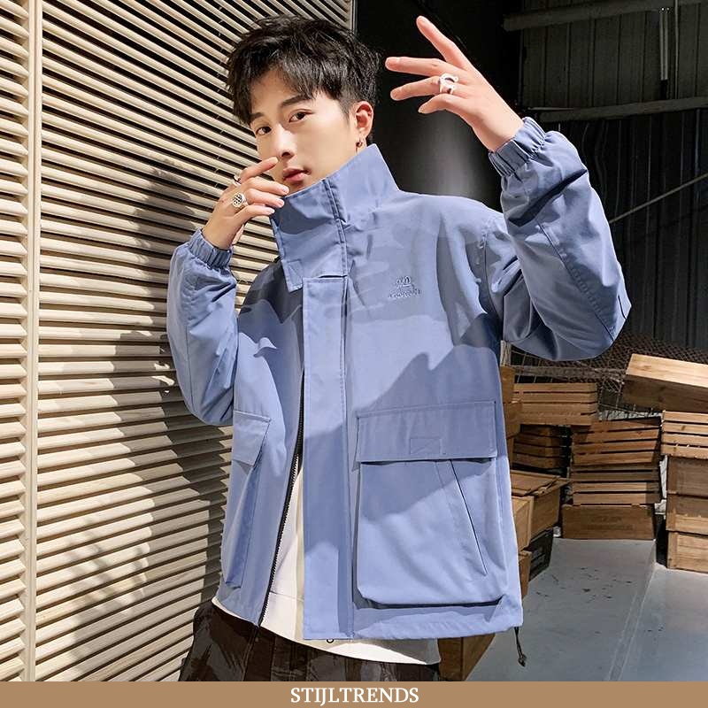 Jas heren : jack met capuchon cargo lente trendy herfst jasje student camouflage mooi mannen zwart, kleur : zwarte, donkerblauwe, khaki.