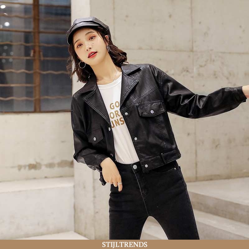 Leren Jas Dames Elegante Zwart Zwarte