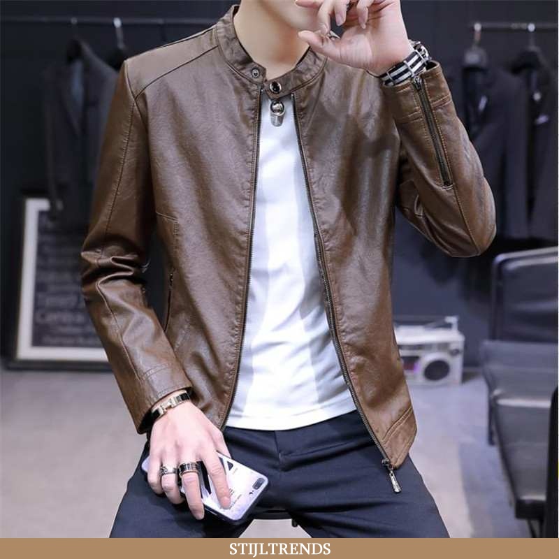 Leren jas heren : jack jas leren casual met kraag slim fit trendy mannen rood, kleur : zwarte, bordeaux, khaki.