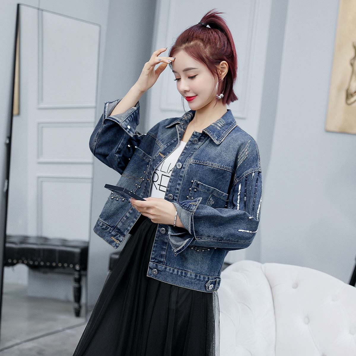 Wollen jas dames : jack jas denim baggy trendy lente herfst kort jasje blauw alle wedstrijden nieuw mesh rood, kleur : blauwe.